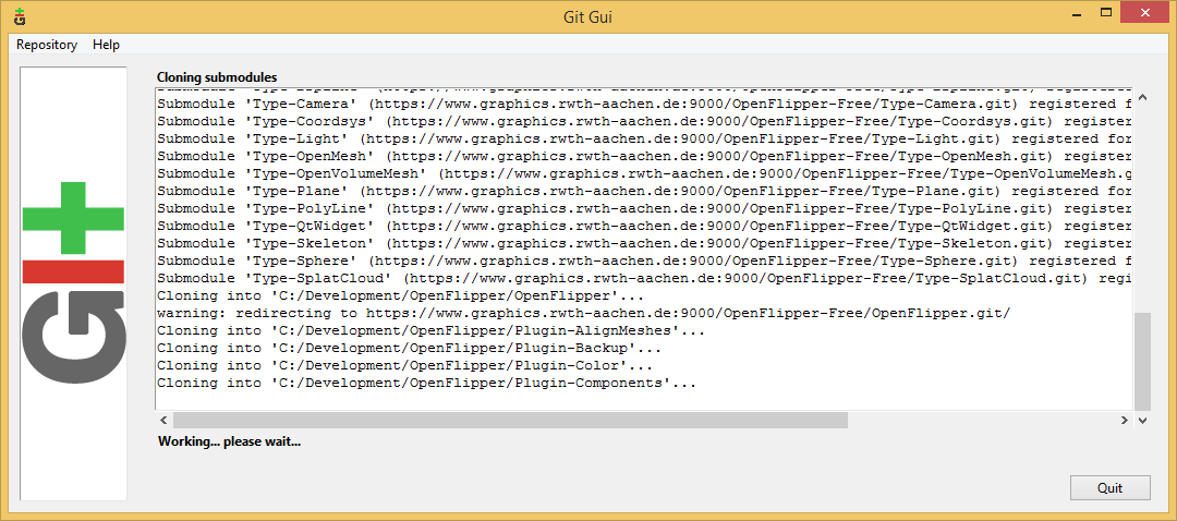 git clone –recursive https://graphics.rwth-aachen.de:9000/OpenFlipper-Free/OpenFlipper-Free.git OpenFlipper-Free