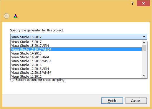 We will use Visual Studio 2017 64-bit mode.