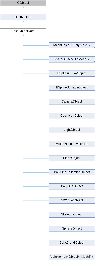 Reimplemented in BSplineCurveObject, BSplineSurfaceObject, CameraObject, CoordsysObject, LightObject, MeshObject< MeshT >, MeshObject< PolyMesh >, MeshObject< TriMesh >, PlaneObject, PolyLineObject, PolyLineCollectionObject, QtWidgetObject, SkeletonObject, SphereObject, SplatCloudObject, and VolumeMeshObject< MeshT >.
