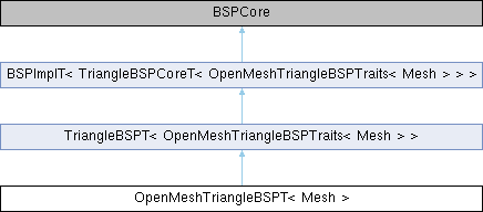 | typedef BSPImplT< TriangleBSPCoreT< OpenMeshTriangleBSPTraits< Mesh > > > | Base |