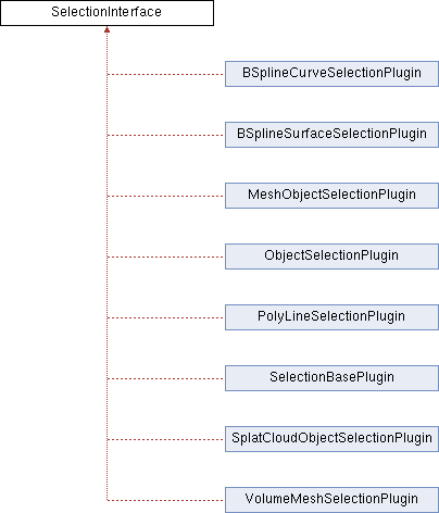 Reimplemented in BSplineCurveSelectionPlugin, MeshObjectSelectionPlugin, ObjectSelectionPlugin, PolyLineSelectionPlugin, BSplineSurfaceSelectionPlugin, SplatCloudObjectSelectionPlugin, and VolumeMeshSelectionPlugin.