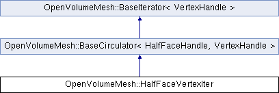 Public Member Functions inherited from OpenVolumeMesh::BaseCirculator< HalfFaceHandle, VertexHandle > | |