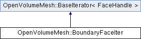 Public Member Functions inherited from OpenVolumeMesh::BaseIterator< FaceHandle > | |
