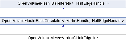 Public Member Functions inherited from OpenVolumeMesh::BaseCirculator< VertexHandle, HalfEdgeHandle > | |