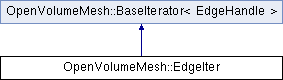 Public Member Functions inherited from OpenVolumeMesh::BaseIterator< EdgeHandle > | |