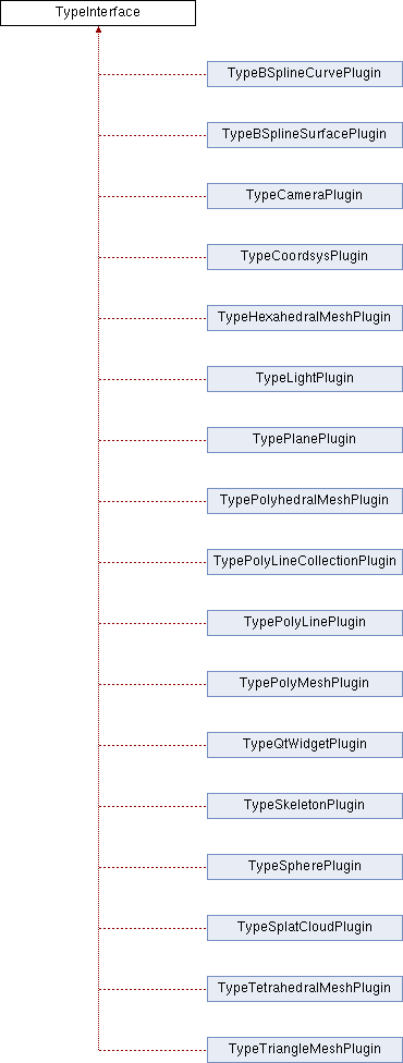 Implemented in TypeLightPlugin, TypeBSplineCurvePlugin, TypeBSplineSurfacePlugin, TypeSkeletonPlugin, TypeSplatCloudPlugin, TypeCameraPlugin, TypePolyLinePlugin, TypeSpherePlugin, TypePolyMeshPlugin, TypeTriangleMeshPlugin, TypePolyLineCollectionPlugin, TypeQtWidgetPlugin, TypePlanePlugin, and TypeCoordsysPlugin.