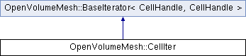 Public Member Functions inherited from OpenVolumeMesh::BaseIterator< CellHandle, CellHandle > | |