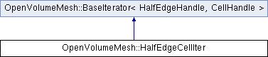 Public Member Functions inherited from OpenVolumeMesh::BaseIterator< HalfEdgeHandle, CellHandle > | |