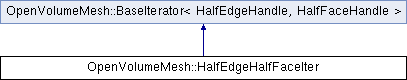 Public Member Functions inherited from OpenVolumeMesh::BaseIterator< HalfEdgeHandle, HalfFaceHandle > | |