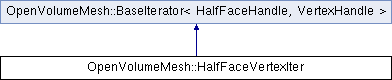 Public Member Functions inherited from OpenVolumeMesh::BaseIterator< HalfFaceHandle, VertexHandle > | |