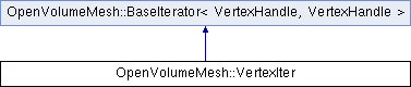 Public Member Functions inherited from OpenVolumeMesh::BaseIterator< VertexHandle, VertexHandle > | |