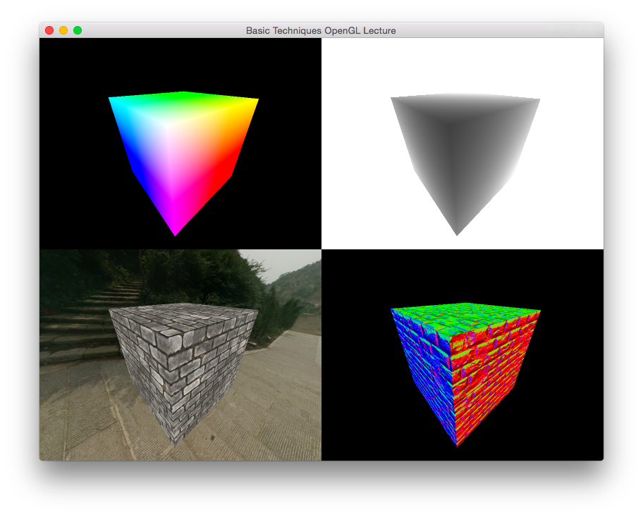 This collection of samples complements the OpenGL primer part of the Basic Techniques lecture. Code shown in the lecture is mostly taken from these samples.