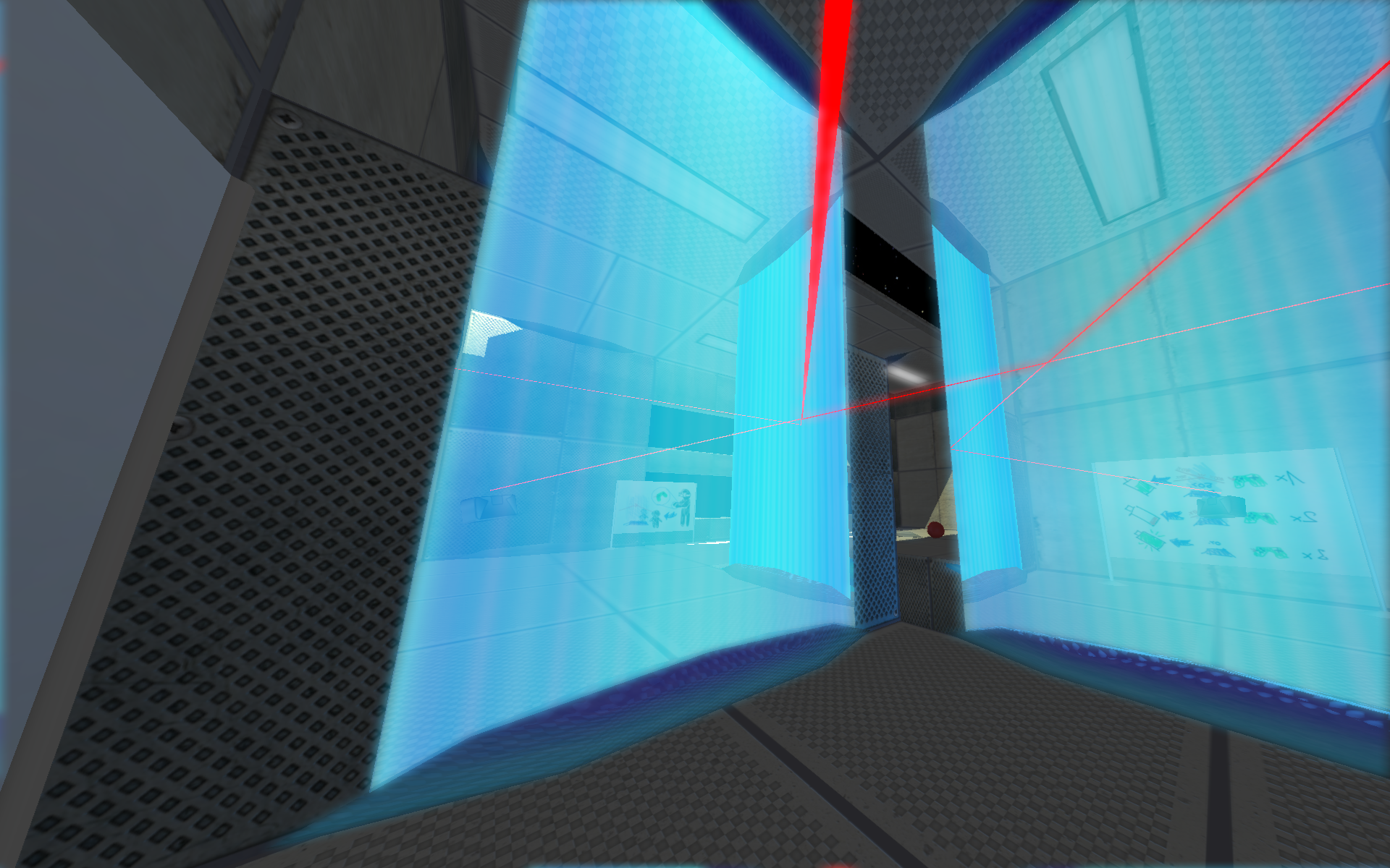 environment to redirect a focused beam and activate triggers. This concept translates well into a first player experience with the Oculus rift, allowing for precise control of the head-mounted laser. The objective is to repair an abandoned space station by advancing through the wrecked parts of it, posing as levels. This setting was chosen primarily for its potential in graphic design and immersion in a virtual reality game.