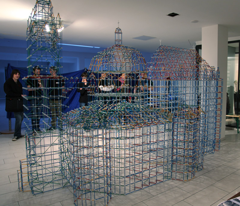In cooperation with Villa Kunterbunt and Zometool our chair rebuild the Aachen Cathedral in a scale of 15:1 out of Zometool. The final building was composed of over 25.000 parts and will be on display in Aachen till the end of 2014.